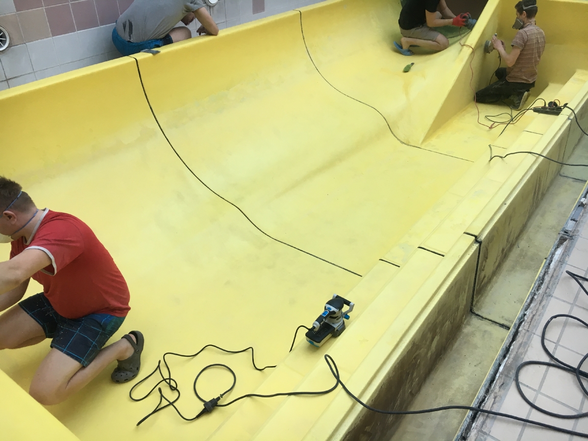 Naprawa laminatu miejscowa i pełne renowacje powierzchni wanny hamownej.