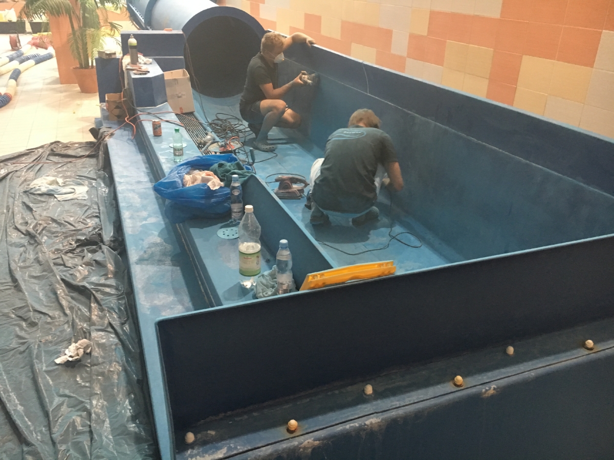 Wykonujemy profesjonalny serwis zjeżdzalni wodnych obejmujący naprawę uszkodzeń laminatu wanny hamownej oraz renowacje rury zjazdowej. Skorzystaj z naszej oferty serwisowej i zapewnij bezpieczeństwo użytkownikom zjeżdzalni wodnych.